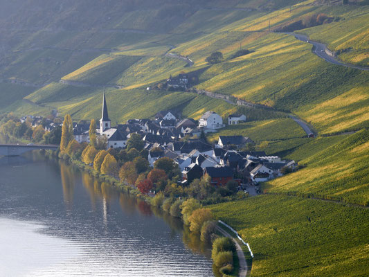 Piesport im Zentrum der Mittelmosel ist bekannt für die hohe Qualität seiner Riesling - Weine. In Verbindung mit